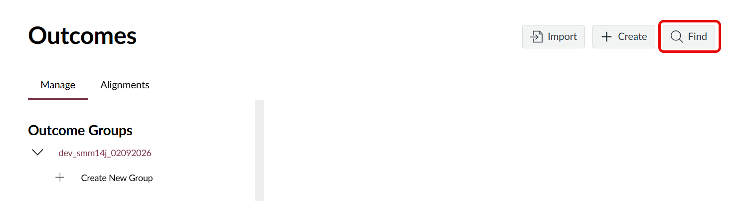 It is best practice to import Outcomes from your department, college, or another Sub-Account grouping rather than building your own. Consult your department to determine whether any Outcomes have already been created and are available.