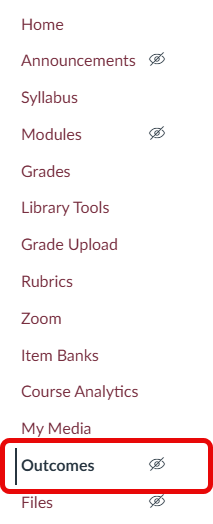 - Select Outcomes from the course navigation menu on the left of the screen.